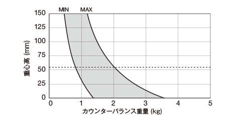 | カウンターバランス範囲 | 0.8 ~ 2kg(重心高 55mm) |