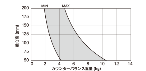 | カウンターバランス範囲 | 3 ~ 7.5kg (重心高100mm) |